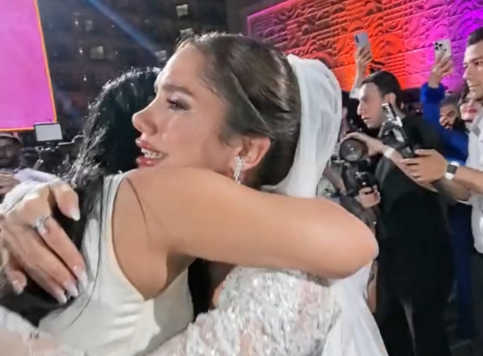 بكاء رنا رئيس في حضن والدتها خلال حفل زفافها