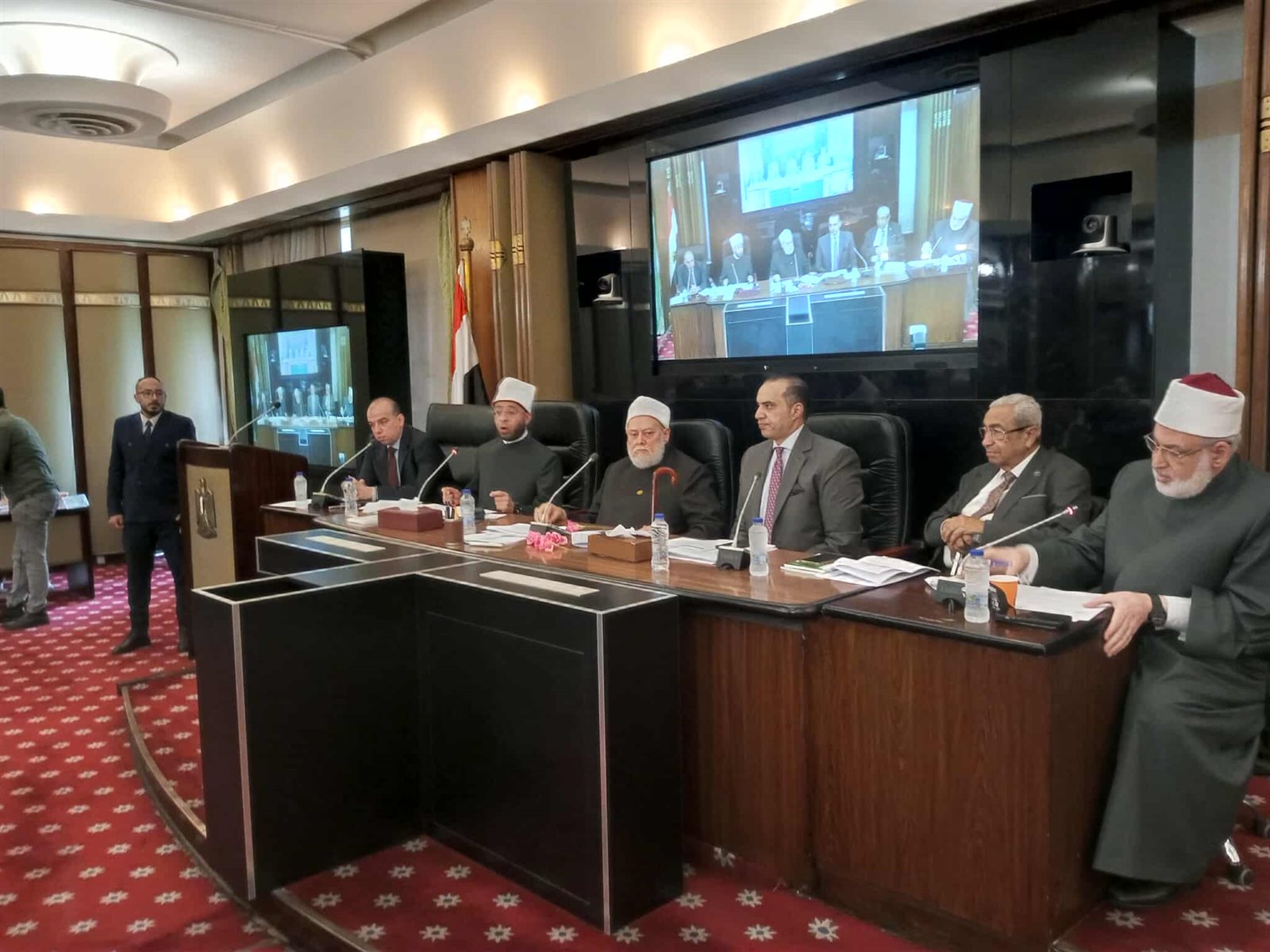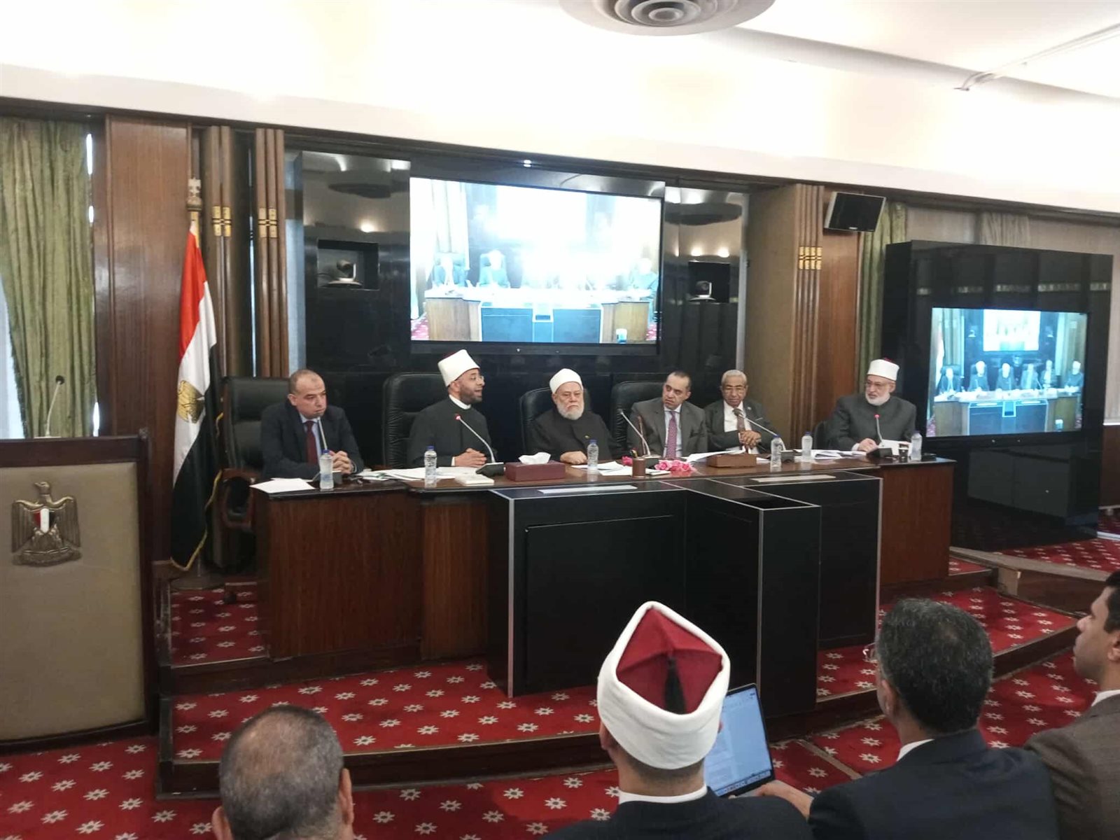 جاء ذلك خلال اجتماع لجنة الشئون الدينية والأوقاف بمجلس النواب يوم الاثنين، برئاسة الدكتورعلى جمعة، وبحضور الدكتور أسامة الأزهري، وزير الأوقاف، والمستشار محمود فوزي وزير الشئون النيابية والقانونية، والمستشار محمد عبدالعليم كفافي، المستشار القانوني لرئيس المجلس، والدكتور محمد الضويني، وكيل الأزهر الشريف، لمناقشة مشروع القانون المقدم من الحكومة بتنظيم إصدار الفتوى الشرعية.