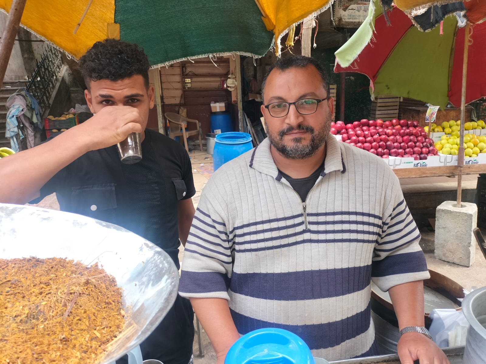 وتابع الأستاذ «إيهاب» أن جودة المادة الخام التي يستخدمها في صناعة عصائر الصيف تجعل الجميع يتردد عليه لشراء العصائر منه وخاصة العرقسوس والتمر هندي، مشيراً إلى أنه يبيع سعر الكوب بخمس جنيهات مترأفا بحالة المواطنين ومعظم بائعي السوق الذين يترددون عليه لتناول كوب عصير بارد لتخفيف حرارة الجو.