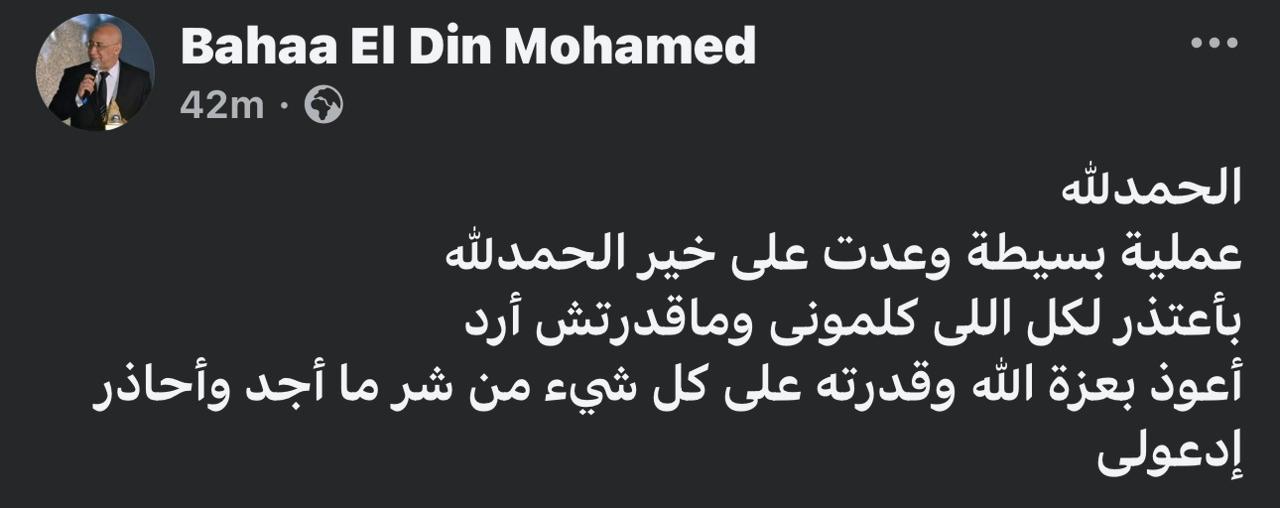 عدت على خير.. بهاء الدين محمد يطمئن الجمهور بعد خضوعه لعملية جراحية
