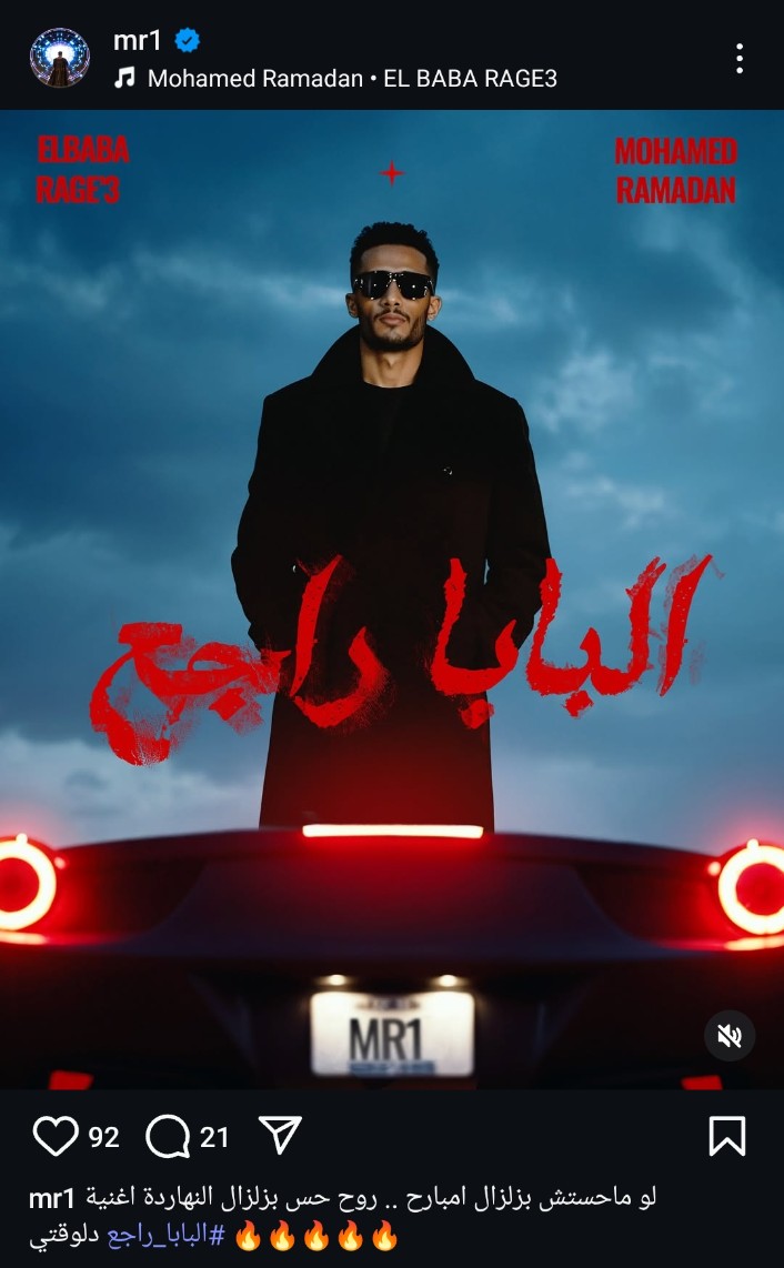 طرح الفنان محمد رمضان أغنية البابا راجع و شوق الجمهور لسماعها من خلال منشور عبر حسابه الرسمي على موقع تبادل الصور والفيديوهات انستجرام من خلال طرح البوستر الدعائي الخاص بها وعلق عليه تعليقًا مثيرًا للجدل.
