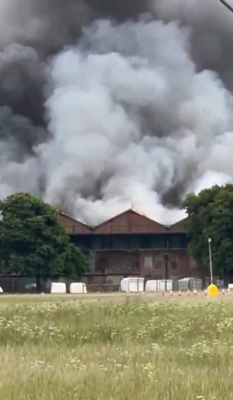 حريق هائل يلتهم موقع بيستر موشن في أوكسفوردشاير: انفجارات ودخان كثيف يعمّ الأجواء