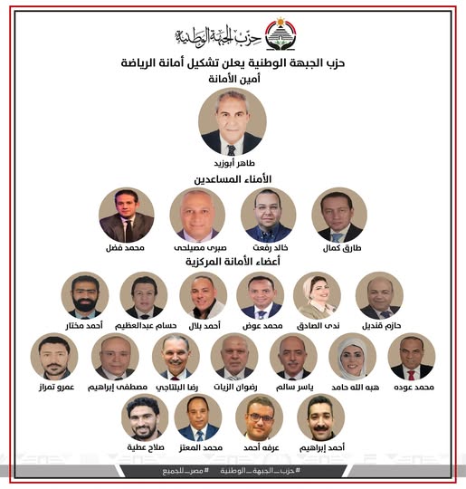 في إطار حرصه على تمكين الكفاءات وتفعيل دور الرياضة كأداة تنموية، أعلن حزب الجبهة الوطنية عن تشكيل أمانة الرياضة المركزية برئاسة الكابتن طاهر أبوزيد، أحد أبرز رموز الرياضة المصرية، ووزير الرياضة الأسبق.