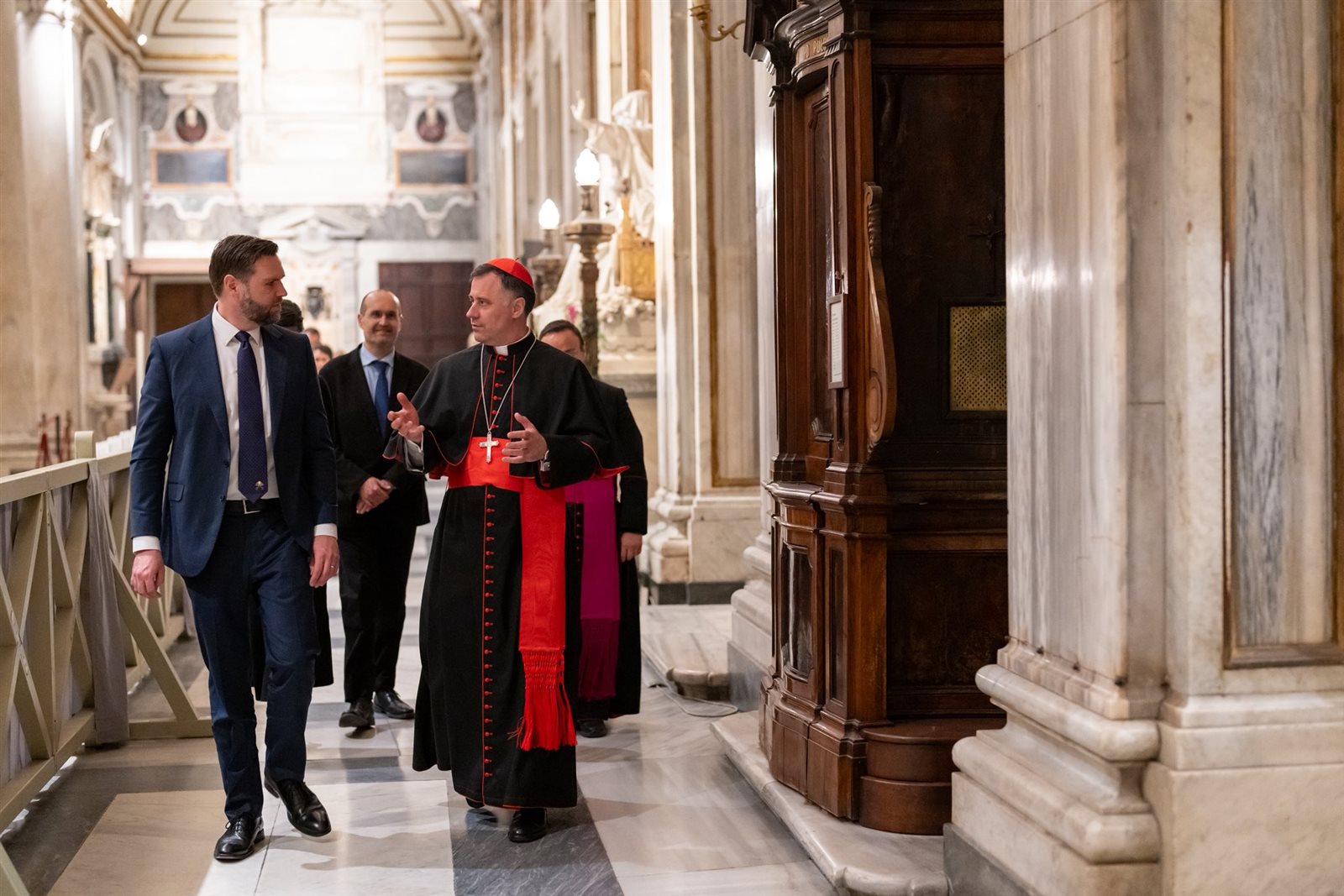 ويحضر حفل تنصيب الفاتيكان، الرئيس الأوكراني فولوديمير زيلينسكي، و الرئيس الإسرائيلي إسحاق هرتسوج، والنيجيري بولا أحمد تينوبو، والبيروفية دينا بولوارتي، والرئيس واللبناني جوزيف عون، ونائب الرئيس الأمريكي دي فانس ووزير الخارجية الأمريكي ماركو روبيو.