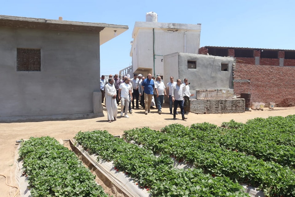 محافظ القليوبية يتفقد إحدى مزارع الفراولة التي تستخدم أحدث طرق الزراعة الحديثة والري بقرية ميت كنانه مركز طوخ