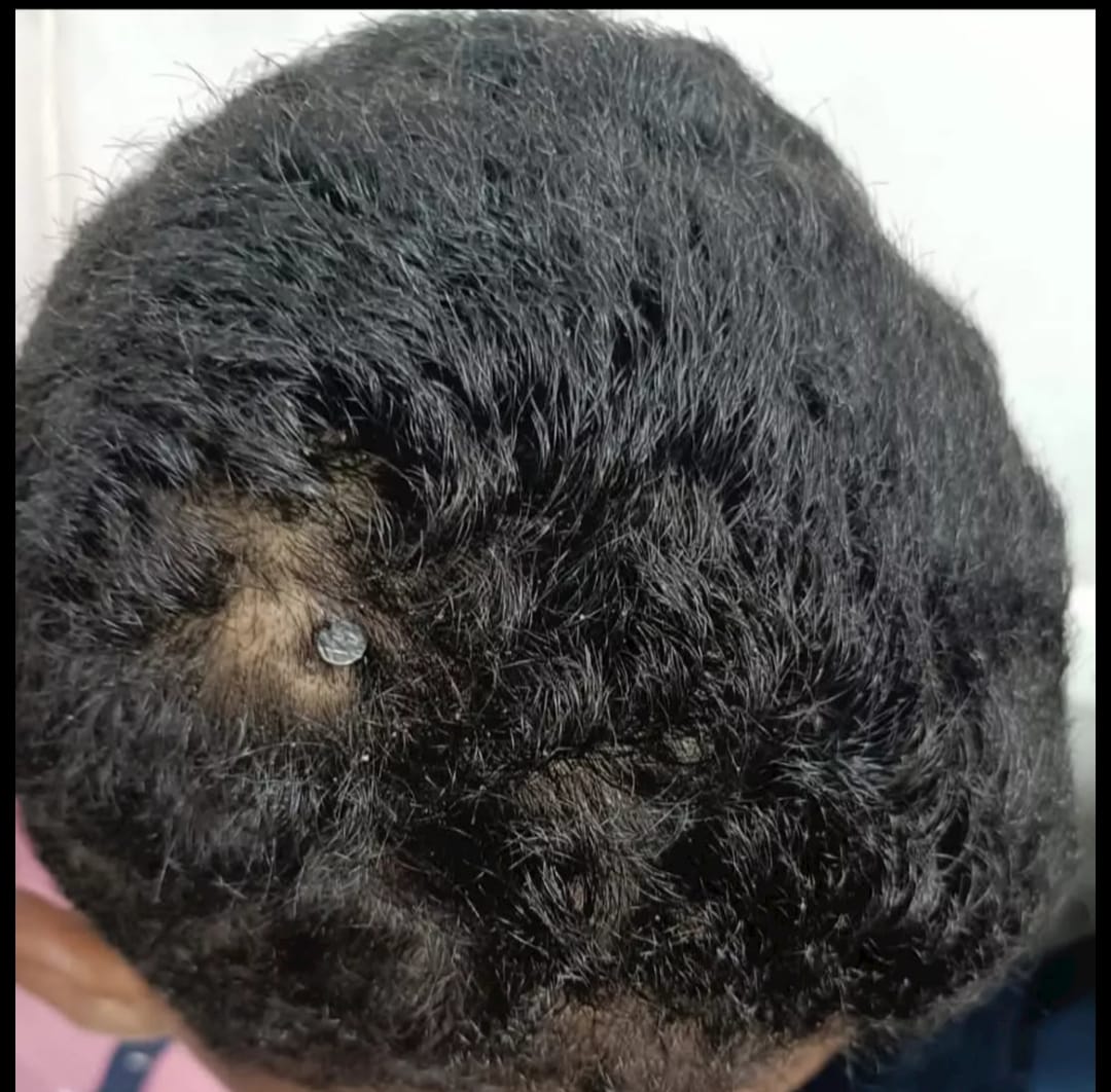 كان الطفل قد وصل إلى قسم الطوارئ وهو يعاني من وجود جسم غريب ظاهر في فروة الرأس. وبعد إجراء الفحوصات الإكلينيكية والتصوير بالأشعة المقطعية (CT)، تبين وجود مسمار معدني مغروس بزاوية عمودية في العظام الجدارية الأمامية للجمجمة، ممتداً بشكل خطير نحو القشرة الدماغية، ما كان يُشكل تهديدًا مباشرًا على حياة الطفل.