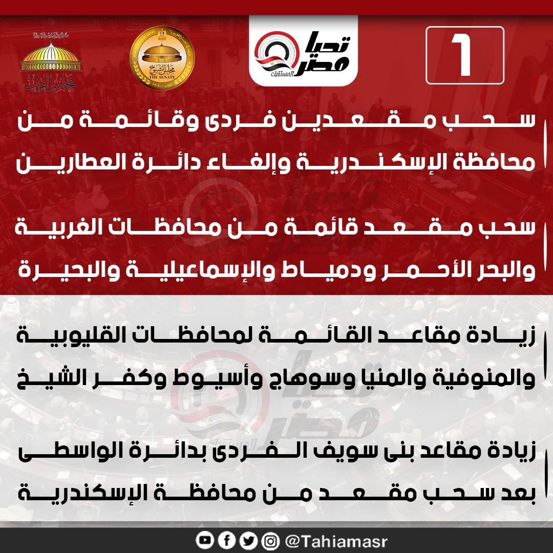 - سحب مقعد قائمة من محافظات الغربية والبحر الأحمر ودمياط والإسماعيلية والبحيرة