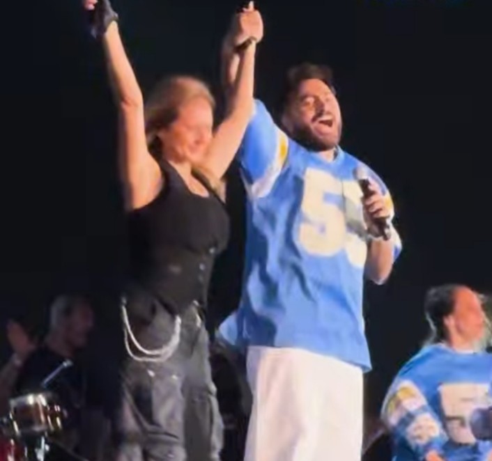 فاجأ النجم تامر حسني جمهوره بصعود النجمة نيللي كريم إلى خشبة المسرح، لتشاركه أداء أغنية "يا بنت الإيه"، التي قدماها سابقًا معًا في حفل "Joy Awards" بالمملكة العربية السعودية، ولاقت حينها تفاعلًا واسعًا ونجاحًا جماهيريًا كبيرًا، وجاءت هذه اللحظة لتكون من أبرز محطات الحفل، إذ لم يتوقع الجمهور حضور نيللي كريم، المعروفة أساسًا بأدوارها الدرامية وليس الغنائية، ما أضفى عنصر مفاجأة وخصوصية على الأداء المشترك بين النجمين، وقد حظيت الأغنية بتصفيق حار من الحضور، حيث بدت الكيمياء الفنية واضحة بين تامر ونيللي، لتؤكد مرة أخرى نجاح تجربتهما الغنائية المشتركة.