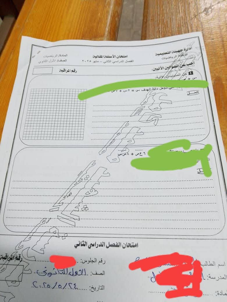 بالإسم ورقم جلوس الطالبة.. تداول امتحان الرياضيات اولى ثانوي بإدارة جهينة سوهاج