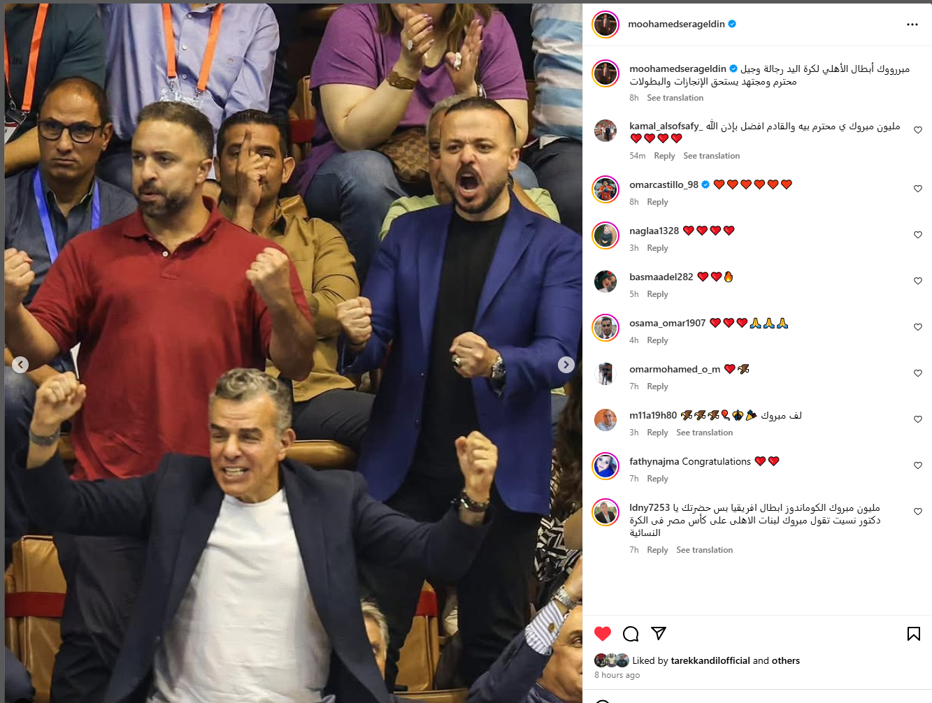 تحيا مصر، وكتب محمد سراج الدين عبر حسابه الرسمي" إنستجرام": مبروك أبطال الأعلي لكرة اليد رجالة،وجيل محترم ومجتهد يستحق الإنجازات والبطولات".