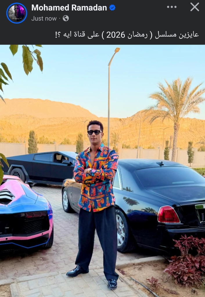 أثار محمد رمضان حماسة متابعيه عندما نشر عبر حسابه الرسمي على فيسبوك صورة جديدة له مرفقة بتعليق قال فيه:" عايزين مسلسل رمضان 2026 على قناة إيه؟"، في محاولة لإشراك جمهوره في اختياراته وإثارة الفضول حول تفاصيل العمل القادم، ولم يعلن عن أي تفاصيل أخري عن هذا العمل.