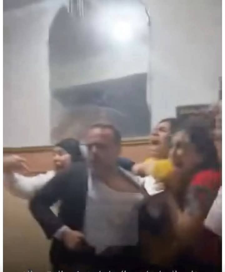 وقد ظهر فى الفيديو المتداول، مجموعة من السيدات يقومون بالتعدى بالضرب والسحل على احد المحامين، مؤكدة من قامت بالتصوير ' انه قام بالتهجم على الفتيات وسبهم بالفاظ خادشة للحياء'.