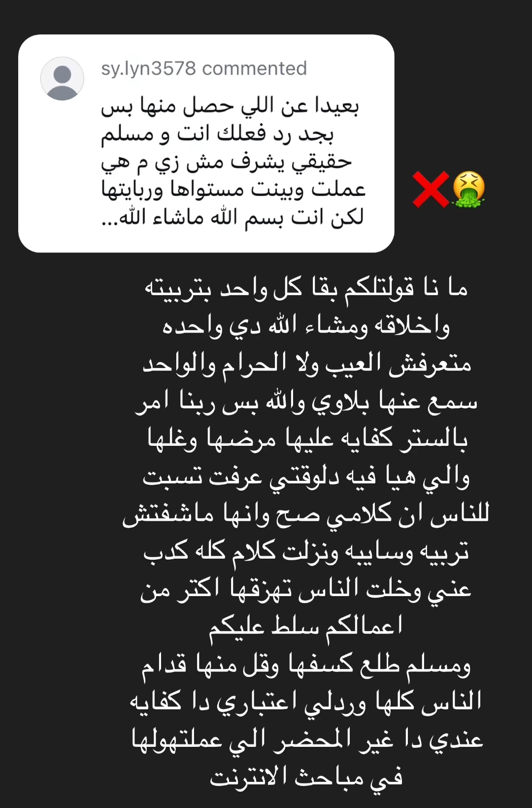 زوجة مسلم لم تكتفِ بالتلميح، بل فتحت النار صراحة على أروى قاسم، متهمة إياها بتجاوز كل الخطوط الحمراء، وفي منشور مثير للجدل عبر حسابها، قالت يارا: “ما نا قولتلكم بقا كل واحد بتربيته وأخلاقه ومشاء الله دي واحده متعرفش العيب ولا الحرام والواحد سمع عنها بلاوي والله بس ربنا أمر بالستر كفاية عليها مرضها وغلها والي هيا فيه دلوقتي عرفت تثبت للناس إن كلامي صح وأنها ماشفتش تربيه وسايبه ونزلت كلام كله كدب عني”.