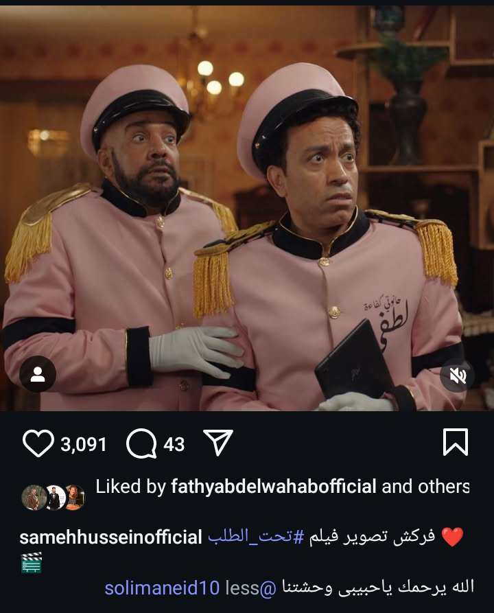 وكشف سامح حسين عن صورة تجمعه بالفنان الراحل سليمان عيد من كواليس تصوير فيلم تحت الطلب وذلك في منشور رصده موقع تحيا مصر عبر حسابه الرسمي بموقع تبادل الصور والفيديوهات انستجرام، وعلق عليها، قائلا: "فركش تصوير فيلم تحت الطلب.. الله يرحمك يا حبيبي وحشتنا".