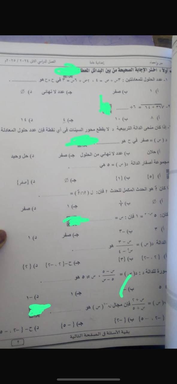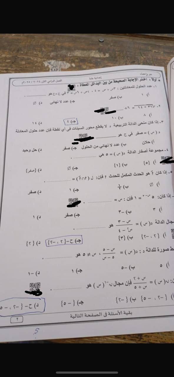 تداول أسئلة وإجابات امتحان الجبر والاحصاء للشهادة الإعدادية محافظة أسوان