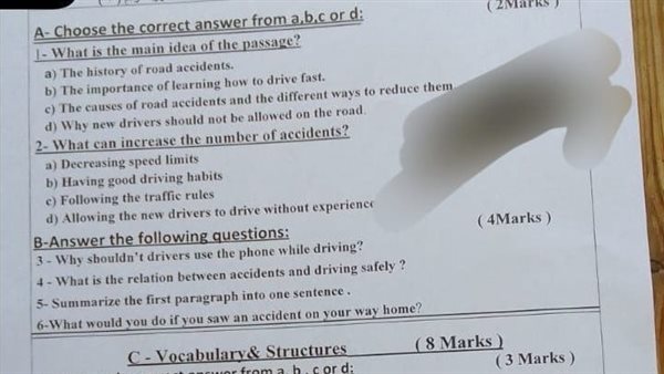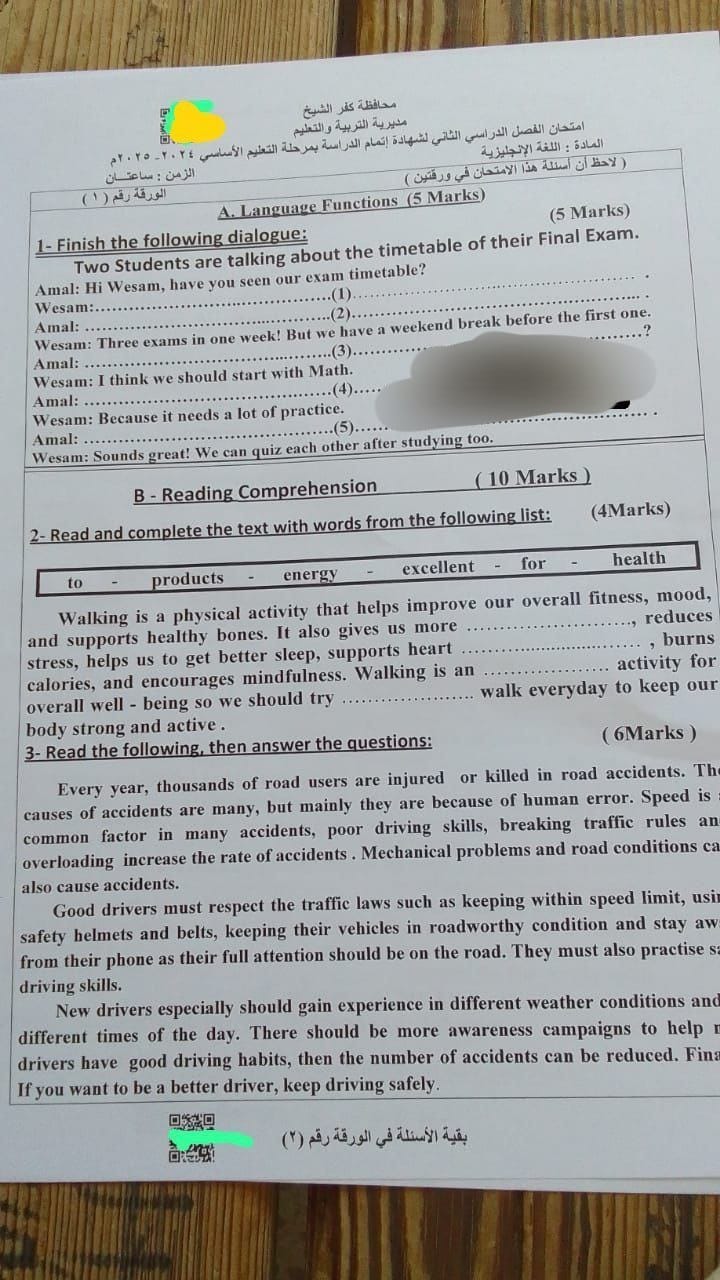 نشر إجابة امتحان اللغة الإنجليزية للصف الثالث الإعدادي كفر الشيخ