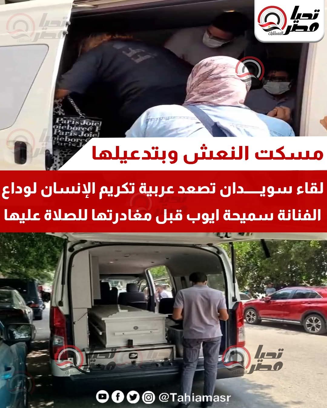لقاء سويدان في عربية الموتى وبكاء بوسي.. وصول جثمان سميحة أيوب لمسجد الشرطة