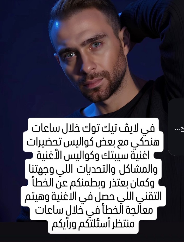 هذا الإعلان جاء ليؤكد مدى حرص حسام حبيب على التواصل المباشر مع جمهوره، وفتح باب النقاش حول العمل من وراء الكواليس، وهو توجه جديد بدأ يتبناه عدد من الفنانين مؤخرًا لتعزيز علاقتهم مع جمهورهم، ورغم النجاح السريع الذي حققته الأغنية، إلا أن طرحها لم يخلُ من العقبات، إذ واجهت بعض المنصات خطأ تقنيًا منع بعض المستمعين من الوصول للأغنية في اللحظات الأولى من إصدارها، وهو ما دفع الفنان إلى تقديم اعتذار علني لمتابعيه، وطمأنهم بأن المشكلة يتم التعامل معها على الفور.