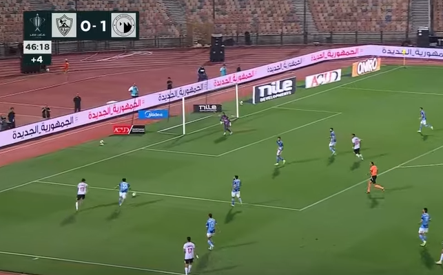 وبعد سيطرة بيراميدز في النصف الأول للشوط الأول، كان الفريق يلعب على تسجيل الهدف الأول من أجل ترجمة السيطرة إلى أهداف حقيقية.