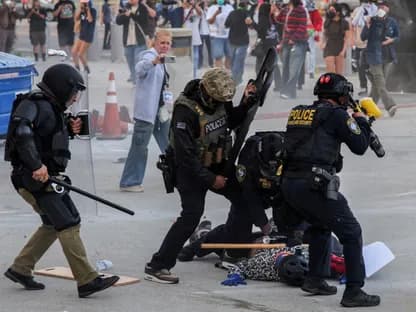 ألقيت مقذوفات على ضباط فدراليين، وأضرمت النار في سيارات. وتم تسجيل استخدام للغاز المسيل للدموع والقنابل الصوتية لتفريق الحشود.