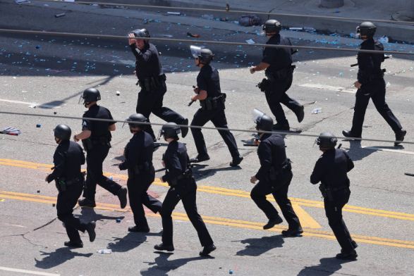 شهدت مدينة لوس أنجليس الأميركية الأحد موجة جديدة من أعمال العنف والاحتجاجات، تخللتها اشتباكات بين المتظاهرين والشرطة، وإضرام النيران في سيارات، وعرقلة حركة المرور في شوارع المدينة، لليوم الثالث على التوالي.