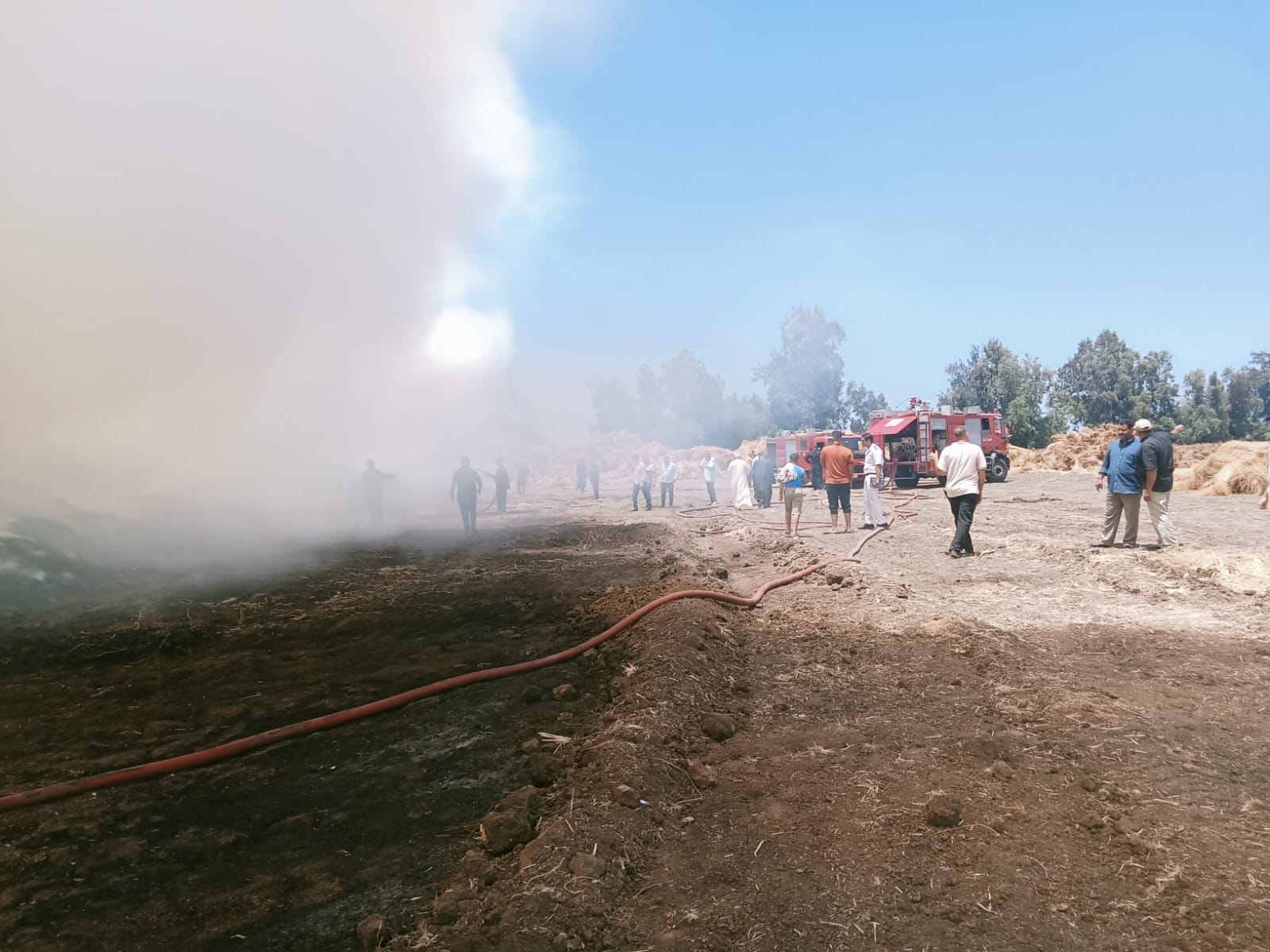 قوات الحماية المدنية تتمكن من السيطرة على حريق هائل التهم محصول الكتان
