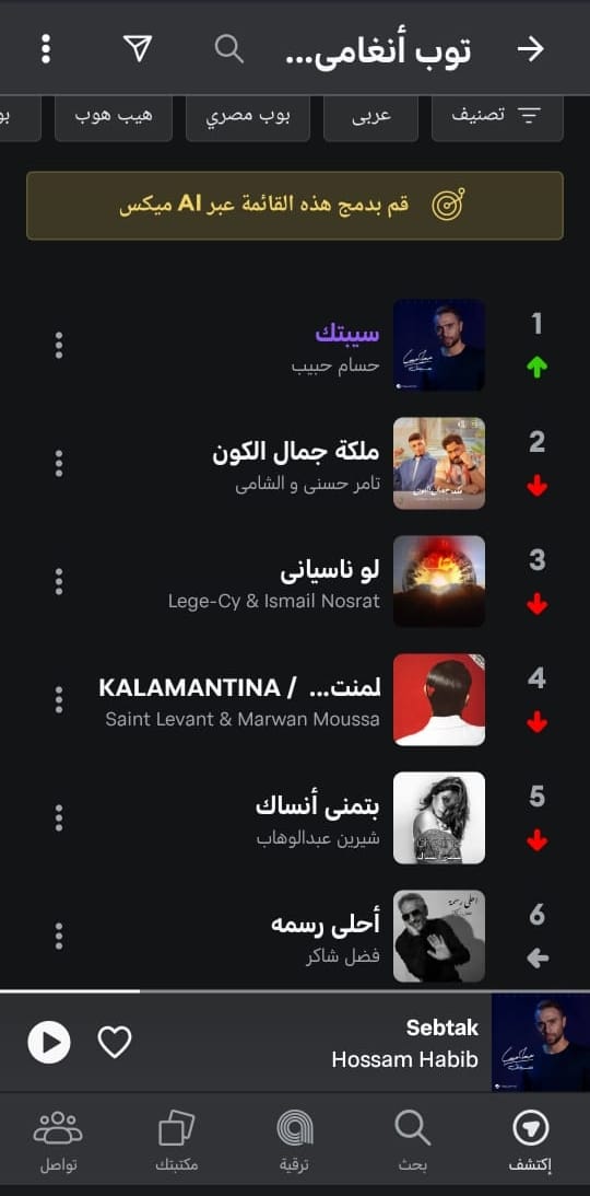 تصدر المطرب والملحن حسام حبيب، قوائم الأكثر استماعًا على منصة أنغامي خلال الساعات الماضية، بأغنيته الجديدة سيبتك التي طرحها قبل عيد الأضحى المبارك، والتي تمثل أولى أغاني ألبومه الجديد.
