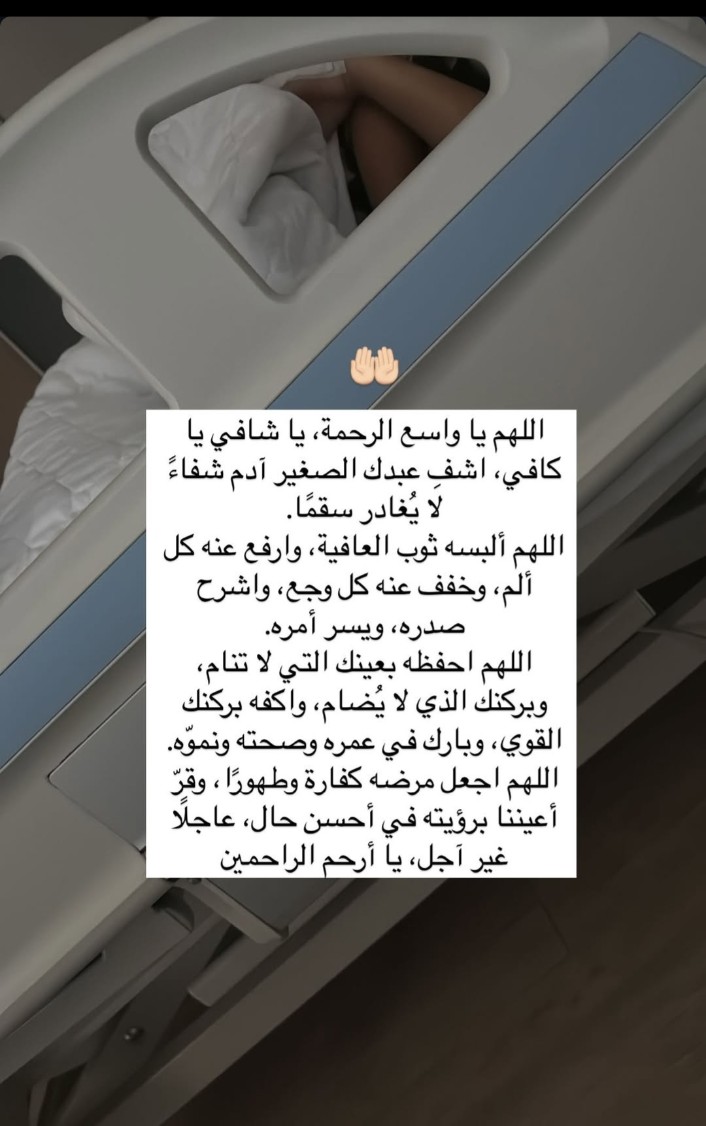 بسمة بوسيل تطلب الدعاء لنجلها آدم من داخل المستشفى