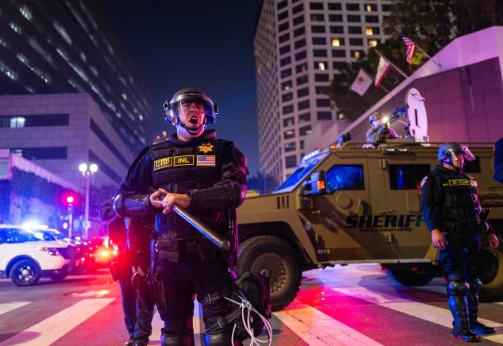 لليوم الرابع على التوالي تواصل الاحتجاجات في لوس أنجلوس المناهضة للاجراءات التي تتخذها إدارة الرئيس الأميركي دونالد ترامب بحق المهاجرين حيث تتم عمليات مداهمات من جانب وكلاء دائرة الهجرة والجمارك، واعتقال مهاجرين وتكبد المدينة الأمريكية خسائر قدرت وفق تقارير إعلامية بأكثر من مليار دولار.