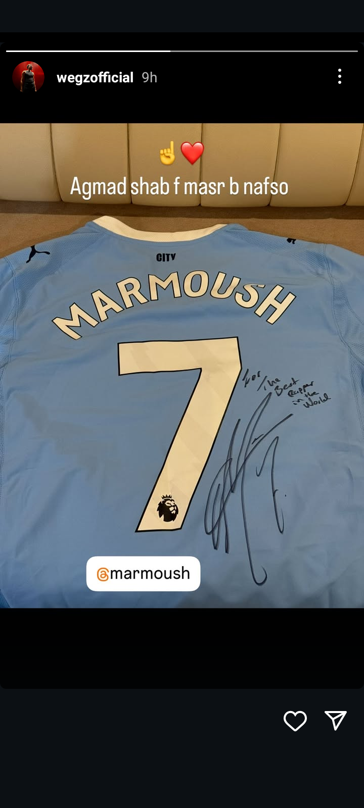 شارك مطرب الراب الشهير ويجز صورة لـ تيشرت عمر مرموش على حسابه الرسمي بموقع تبادل الصور والفيديوهات انستجرام من خلال خاصية ستوري، كاشفا عن إهداء الاخير له هذا التيشيرت.