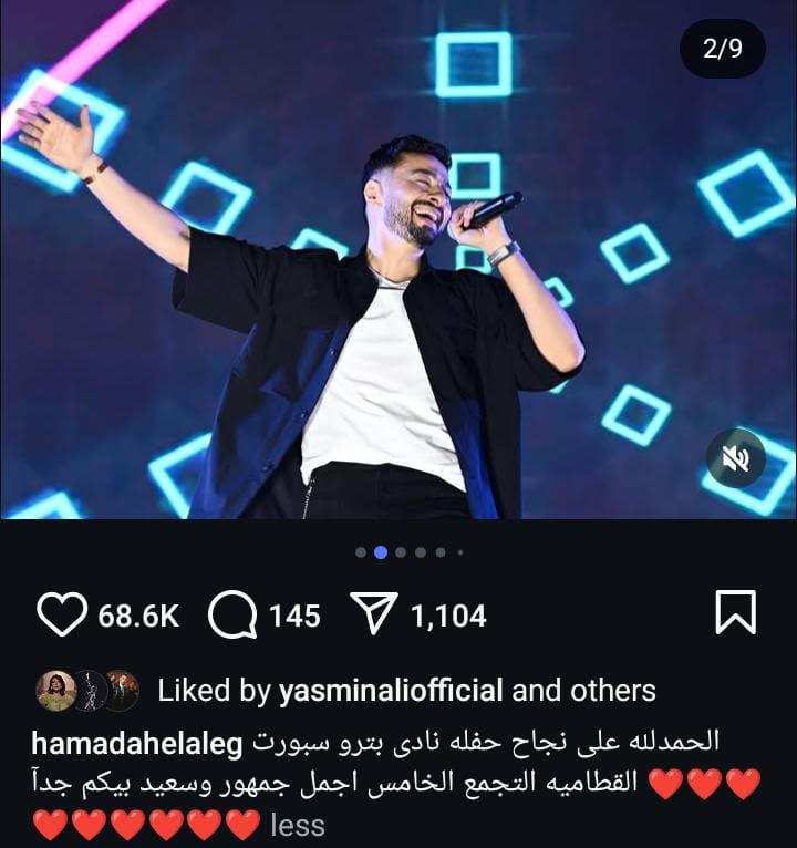 ونشر حماد هلال مجموعة صور من حفل التجمع الخامس على حسابه الرسمي بموقع تبادل الصور والفيديوهات انستجرام، في منشور رصده موقع تحيا مصر منذ قليل وعلق عليه، قائلا: الحمدلله على نجاح حفله نادى بترو سبورت القطاميه التجمع الخامس اجمل جمهور وسعيد بيكم جدآ.