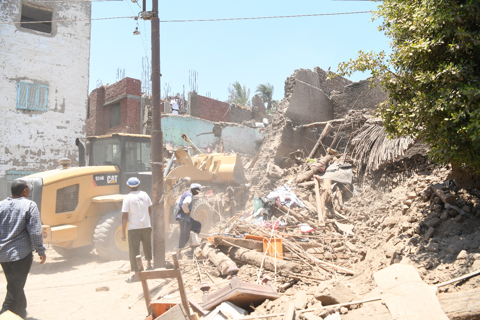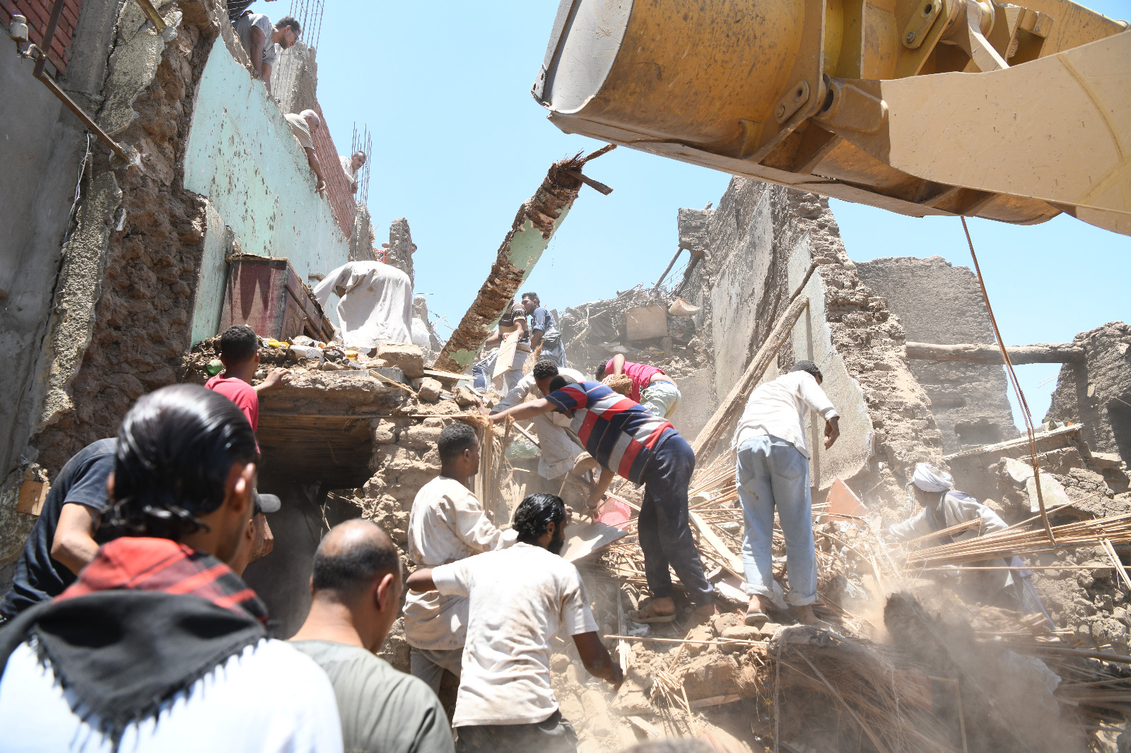 محافظ قنا يشرف على استخراج جثمان طفلة من تحت الأنقاض بعد انهيار منزلها بدندرة.. صور