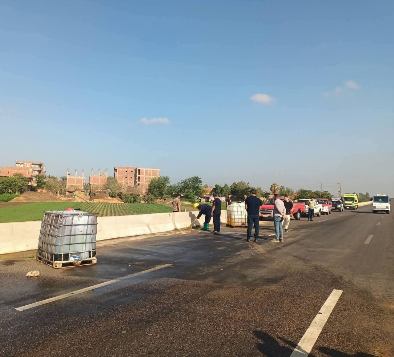 تبين من خلال المعاينة أن السبب اختلال عجلة القيادة فى يد السائق أدى إلى انحراف السيارة عن مسارها وانقـ ـلابها، وهى محملة بـ ٢ فنطاس سعة ٢٠٠ لتر فلاش، لا توجد شبهة جنائية، وتحرر محضر بالواقعة لأخطار النيابة العامة لتتولى التحقيقات.
