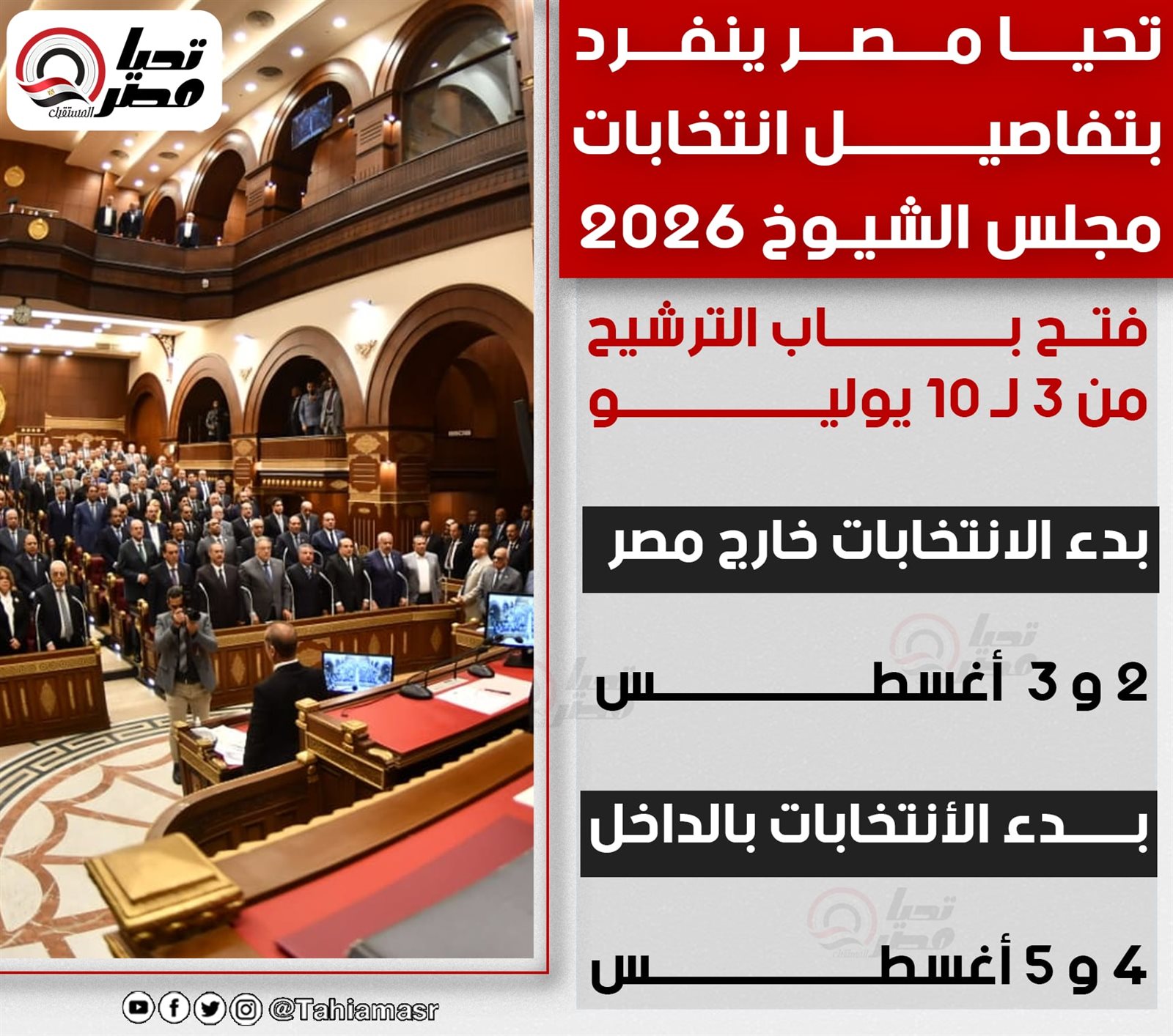 تحيا مصر ينفرد.. مصادر سياسية تكشف فتح باب الترشح لمجلس الشيوخ 2026 يوم 3 يوليو.. والانتخابات بالداخل 4 أغسطس