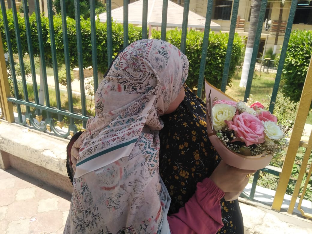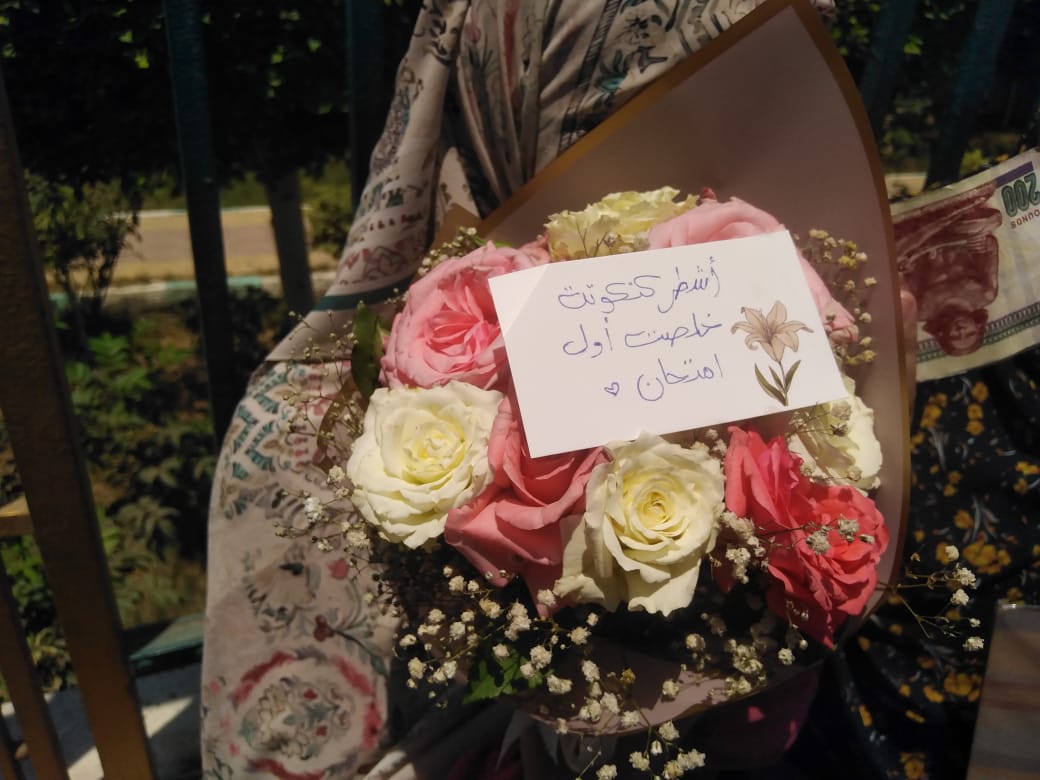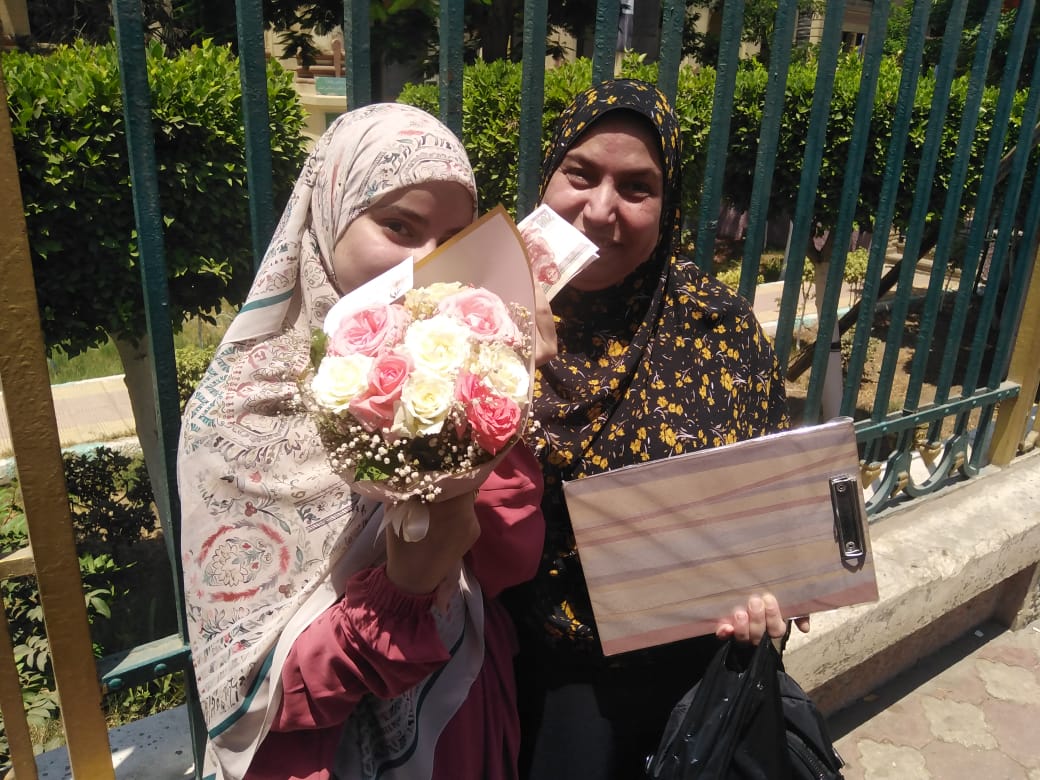 فاجأت أم لإحدى طالبات الثانوية العامة نجلتها اليوم، أثناء خروجها من إحدى لجان امتحانات الثانوية العامة بمدينة شبين الكوم في محافظة المنوفية، إذ انتظرتها بـ"بوكيه" ورد ومبلغ مالي "200" جنيه وورقة كتبت عليها "أشطر كتكوت خلصت أول امتحان".