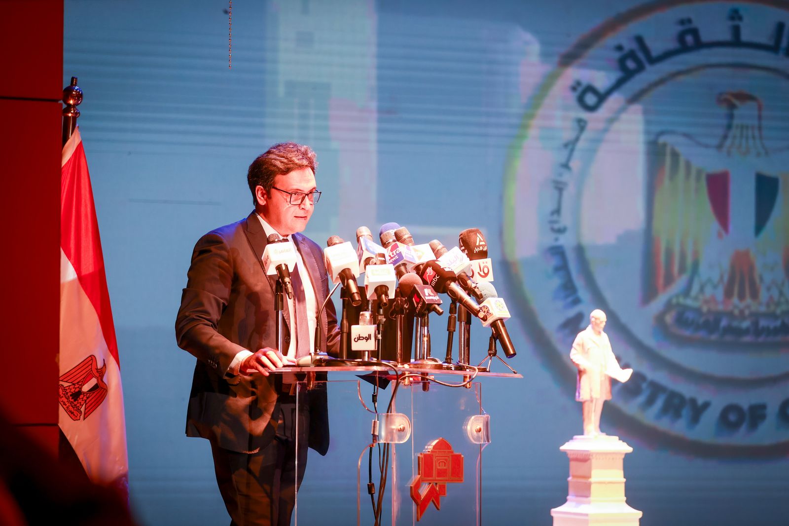 وأكد وزير الثقافة أن “الشباب بحاجة إلى قدوات حقيقية تُلهمهم وتوجّههم نحو القيم التي تُبنى بها الأوطان، ومن هنا نحرص على تجسيد هذه الشخصيات في مياديننا ومؤسساتنا الثقافية، لتظل حاضرة في ذاكرة المجتمع وشاهدًا حيًّا على ما يمكن أن يصنعه الإخلاص والعمل”.