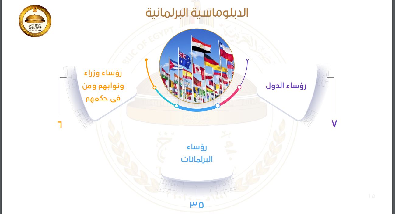 «لقاء 7 رؤساء دول وحضور 79 فعالية دولية».. حصاد الدبلوماسية البرلمانية لمجلس الشيوخ بالفصل التشريعي الأول