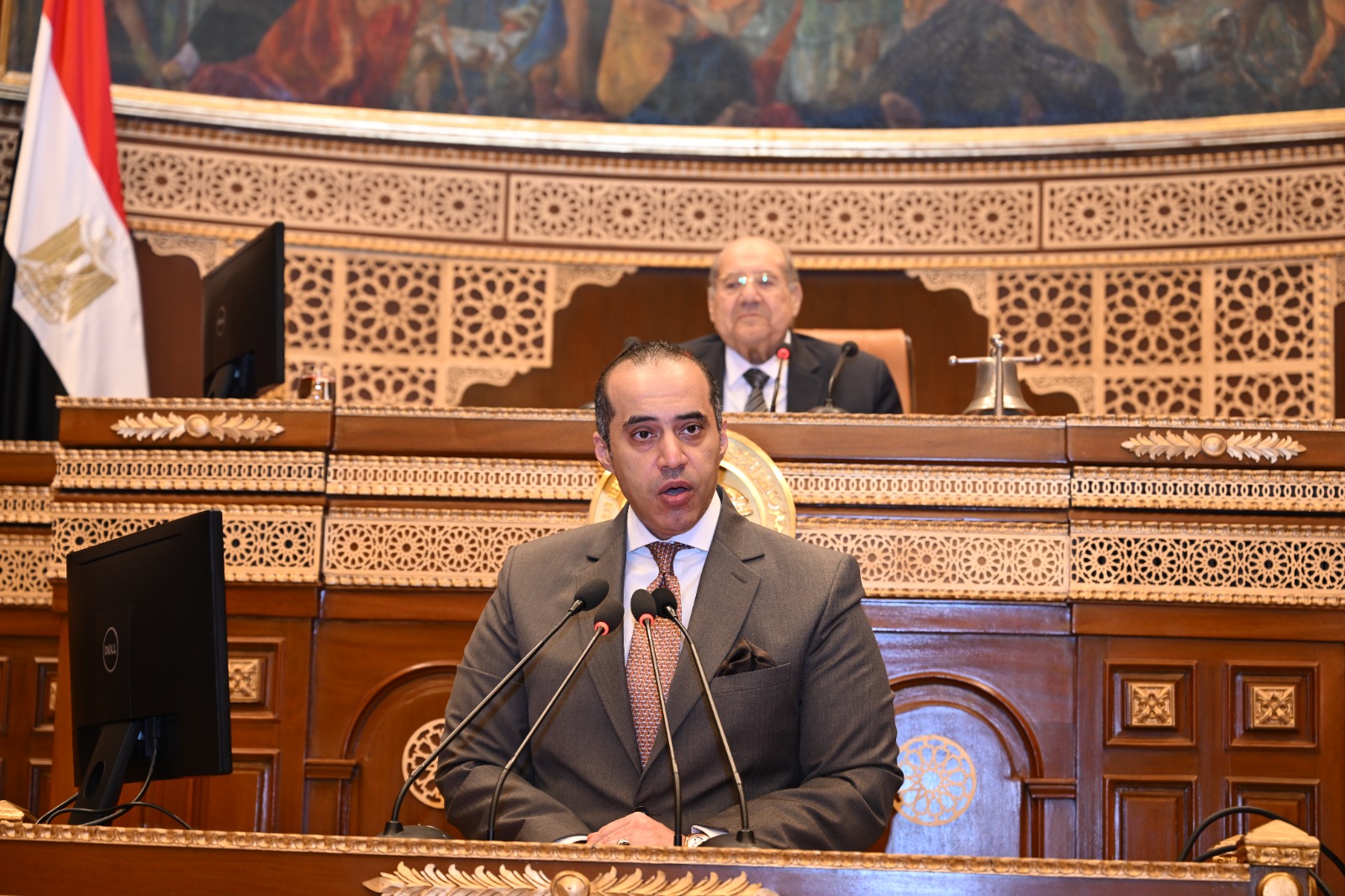وتابع:" أسمحوا لي أن اسجل تقديري الشخصي في مرور واجب على مناقشات شهدتها هذه القاعة الموقرة ، منها على سبيل المثال لا الحصر ، سياسات الحكومة تجاه انشاء و تطوير المطارات و تعظيم الاستفادة في المجال الجوي المصري ، آليات تعزيز مكانة مصر السياحة عالميا و تحقيق التنافسية الدولية ، سياسة الحكومة لتطوير و استغلال الأصول العقارية لقطاع الاعمال العام لتنمية دعم الاقتصاد القومي , مواجهة التطرف الديني ، دور الوقف الخيري في دعم مؤسسات العامة و تحقيق التنمية و غيرها من الموضوعات الهامة , في تأكيد على ان المجلس الموقر بقيادتكم الحكيمة , أقسم ان يؤدي دوره البرلماني و الدستوري ، بإخلاص يدعو الى الفخر و الاعتزاز و حتى الجلسة جلسته الأخيرة. فقد قام مجلسكم الموقر بدور محوري في إثراء النقاش حول هذه القوانين وغيرها، بما يضمه من كفاءات قانونية وخبرات مجتمعية متخصصة، شكلت إضافة نوعية حقيقية للسلطة التشريعية في مصر. كما كان لمجلس الشيوخ إسهاماته الكبيرة في مناقشة قضايا التعليم والصحة والإسكان والثقافة والعدالة الاجتماعية، وغيرها من القضايا الوطنية والمجتمعية الحيوية.