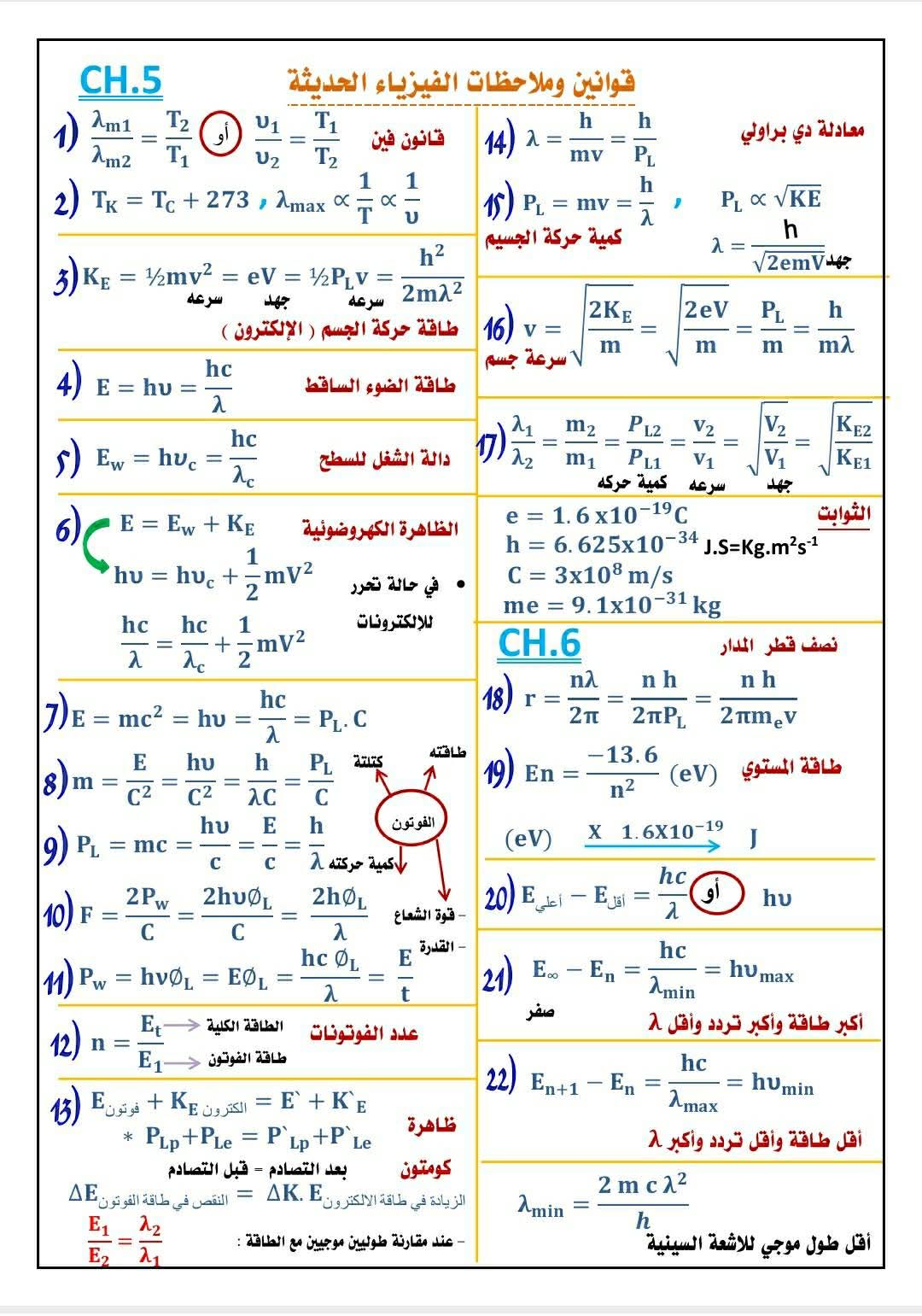 قوانين منهج الفيزياء للثانوية العامة 2025
