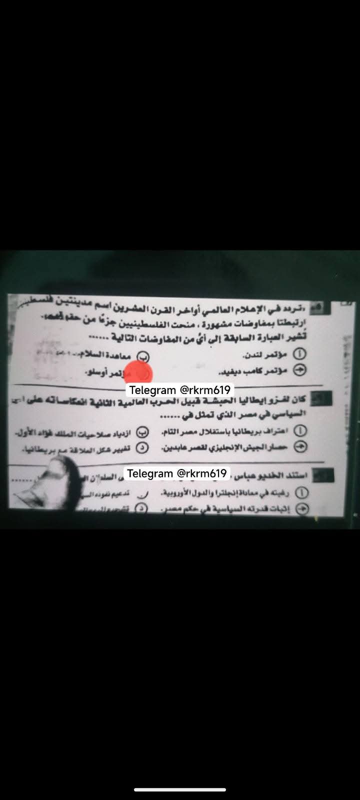 زعمت جروبات شاومينج للغش تداول أسئلة امتحان مادة التاريخ للثانوية العامة لطلاب الشعبة الأدبية.