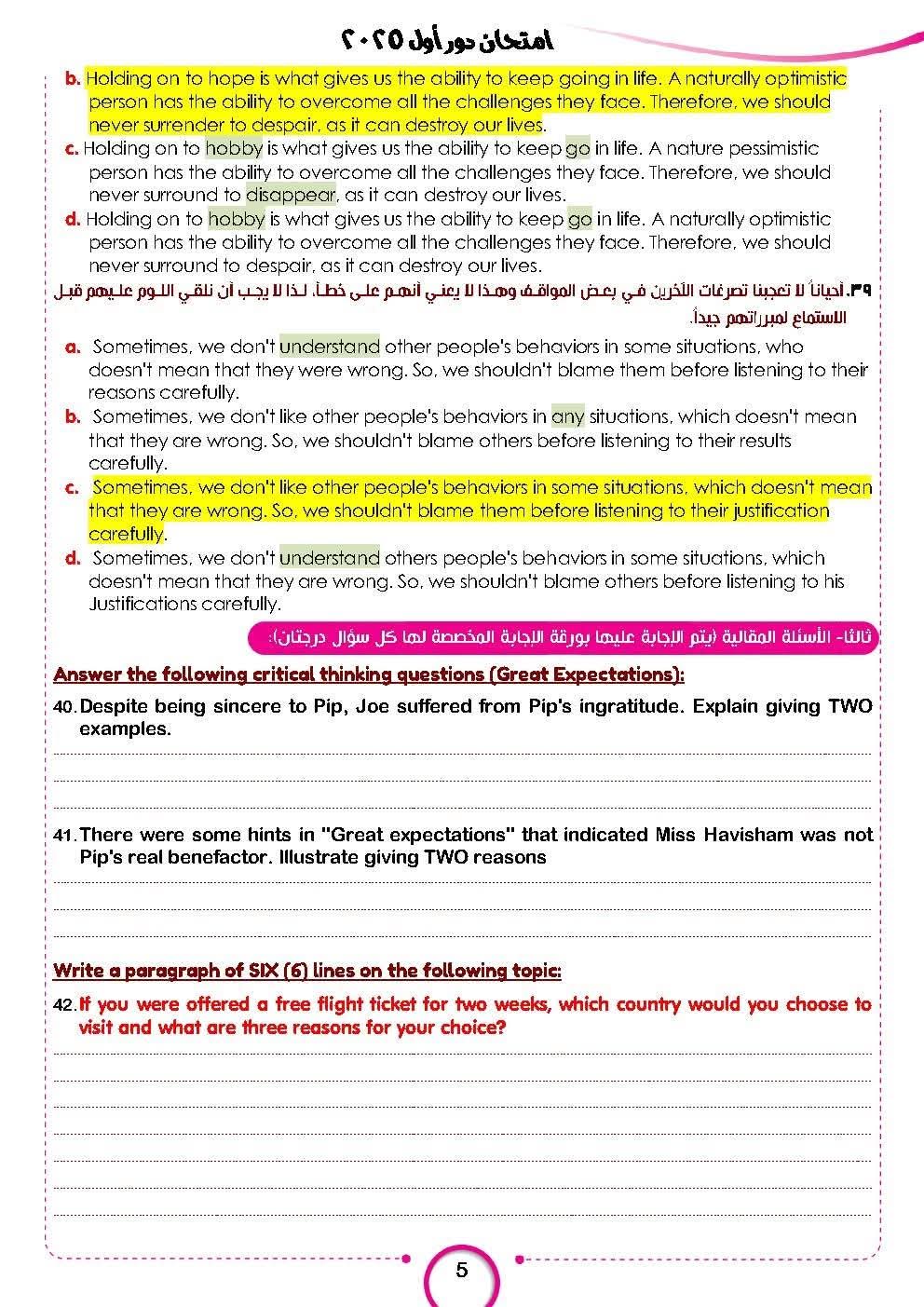- حل امتحان اللغة الإنجليزية للثانوية العامة 2025