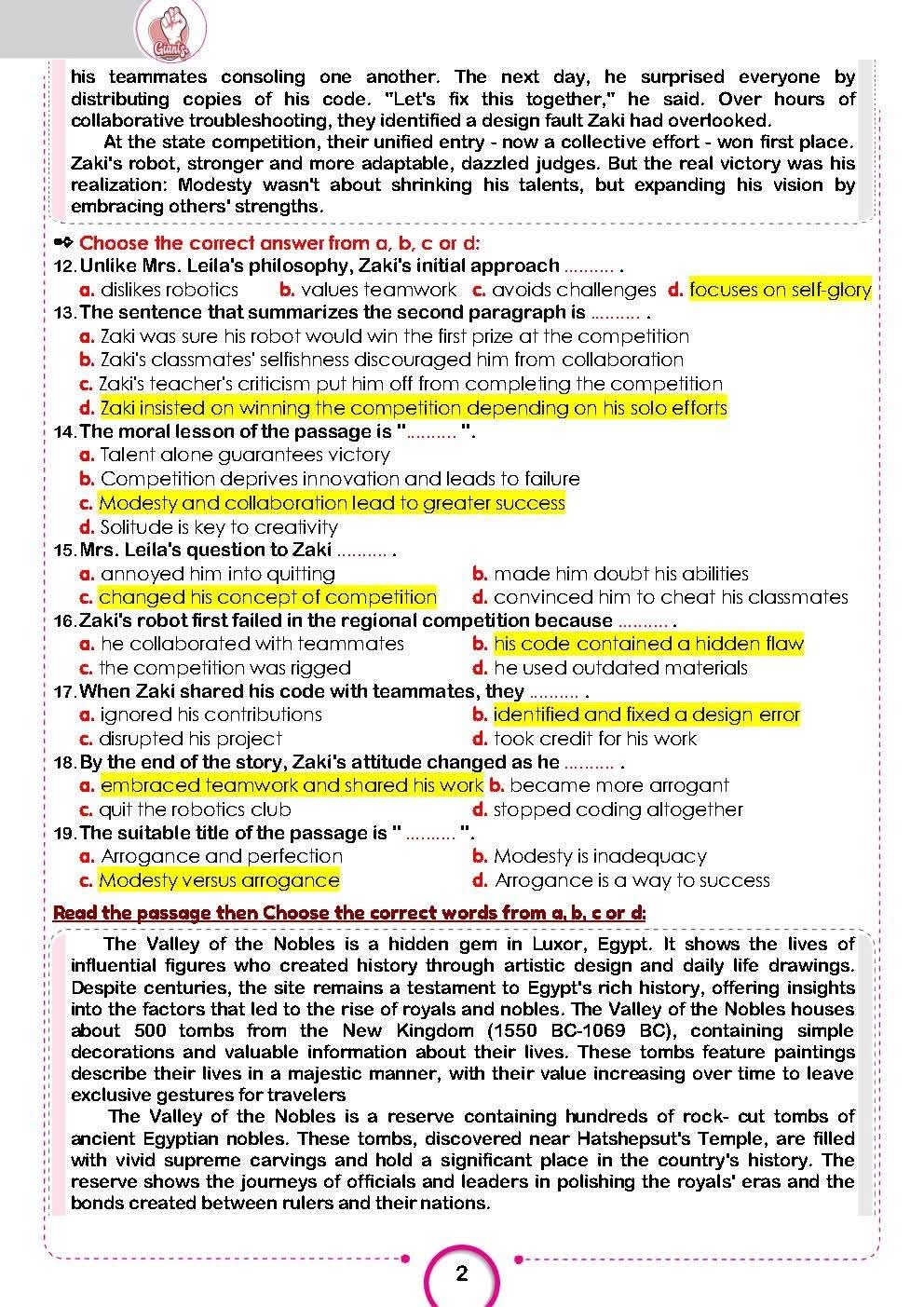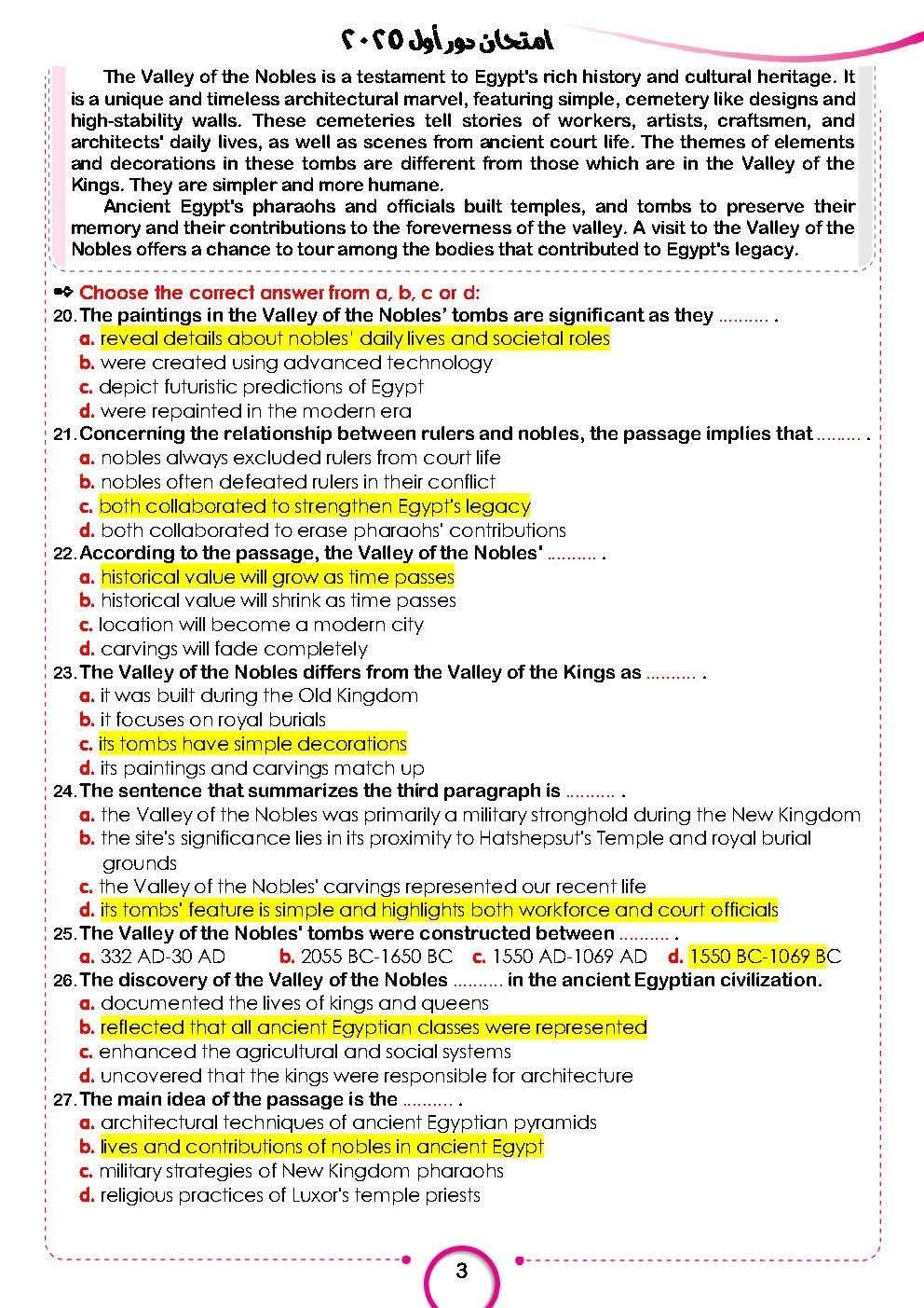 ولم تعلن وزارة التربية والتعليم والتعليم الفني نموذج إجابة امتحان اللغة الإنجليزية للثانوية العامة 2025 ولكن تداولت بعض الجروبات التعليمية حل امتحان اللغة الإنجليزية للثانوية العامة 2025 وهى كالتالي: