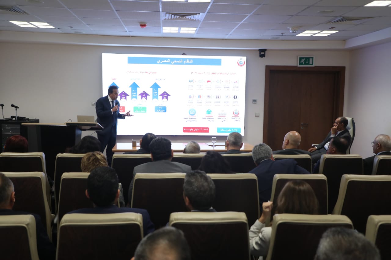 وأشار «عبدالغفار» إلى استعراض الأنظمة الصحية في مصر والتي تتضمن منظومتي التأمين الصحي، والتأمين الصحي الشامل، حيث تم الوصول إلى تغطية 69 مواطن تأمينياً، مقارنة بـ 54 مليون منتفع عام 2014 ضمن منظومة الهيئة العامة للتأمين الصحي، موضحاً أنه تم استعراض إنجازات منظومة التأمين الصحي الشامل بكافة مراحلها، والتي تغطي في مرحلتها الأولى 6 ملايين مواطن، بتكلفة 51.2 مليار جنيه، بينما ستخدم المرحلة الثانية 12.8 مليون مواطن بتكلفة 115 مليون جنيه، مؤكداً أنها منظومة تكافلية، كما أنها منظومة مميزة لكافة العاملين بها.