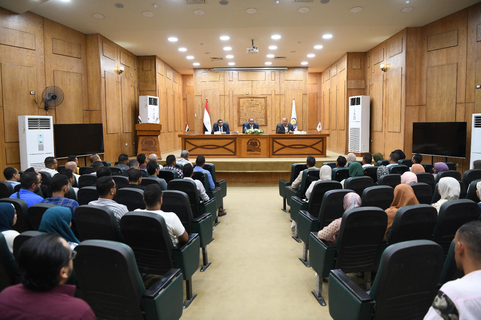 عقد الدكتور خالد عبد الحليم، محافظ قنا، اجتماعًا موسعًا مع المهندسين الجدد الذين تم اختيارهم للعمل بالوحدات المحلية لمدن المحافظة، والبالغ عددهم ٥٧ مهندسا ومهندسة، وذلك بحضور الدكتور حازم عمر نائب المحافظ، واللواء أيمن السعيد السكرتير العام المساعد، و حمدي حسين مدير عام الشؤون المالية والإدارية، و أحمد عطية مدير إدارة الموارد البشرية.
