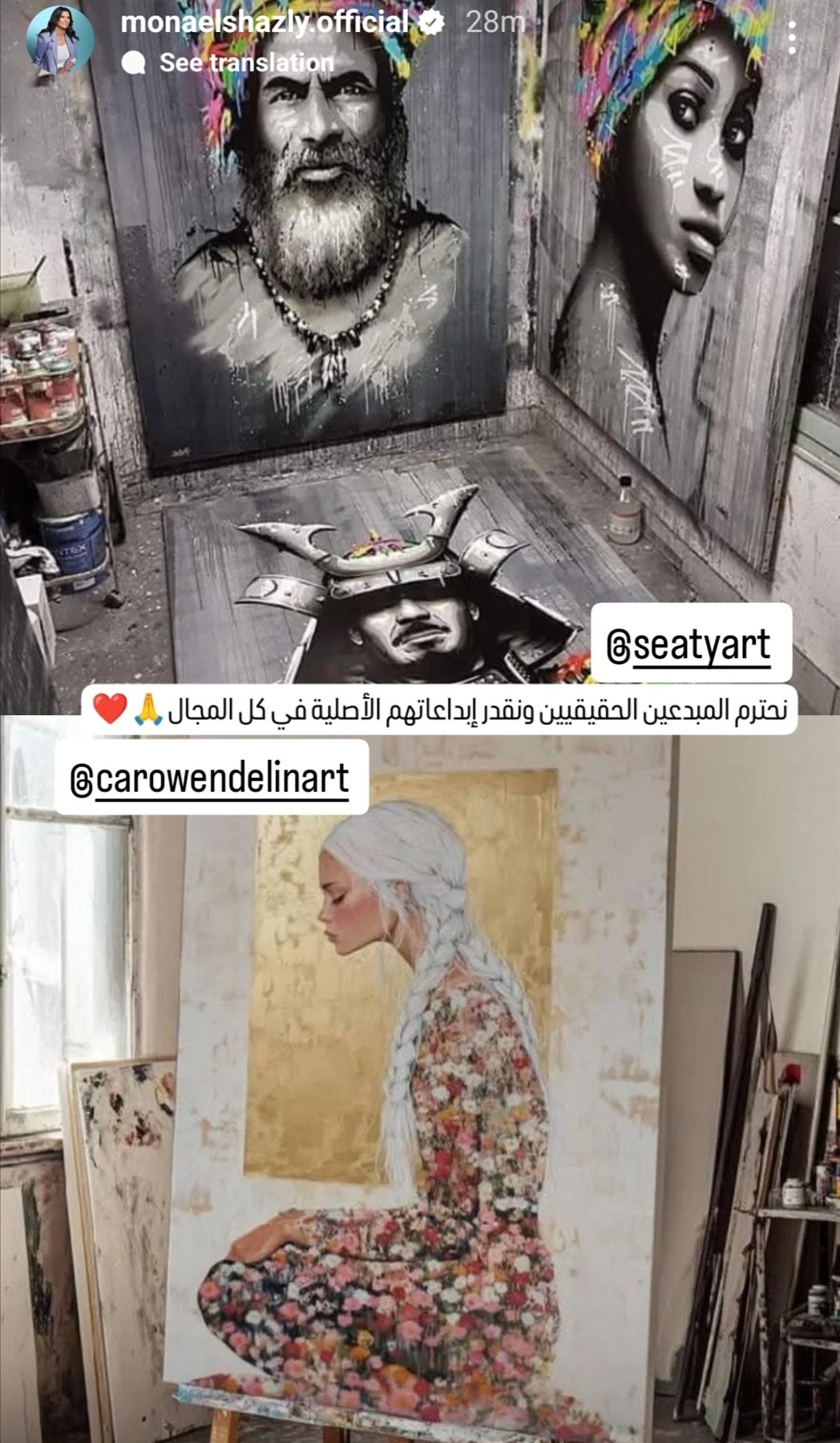 بعد الفنانة الدنماركية.. منى الشاذلي تعتذر لفنانين آخرين بعد سرقة مها الصغير لوحاتهم: نحترم المبدعين الحقيقيين