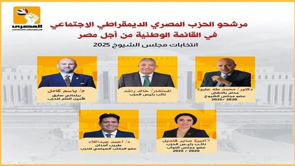 "المصرى الديمقراطى" يدفع بـ 5 مرشحين ضمن القائمة الوطنية من أجل مصر