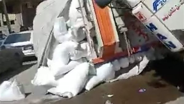 الاجراءات القانونية حول حادث انقـ ـلاب سيارة تريلا محملة بالسكر بطريق رأس غارب في الغردقة
