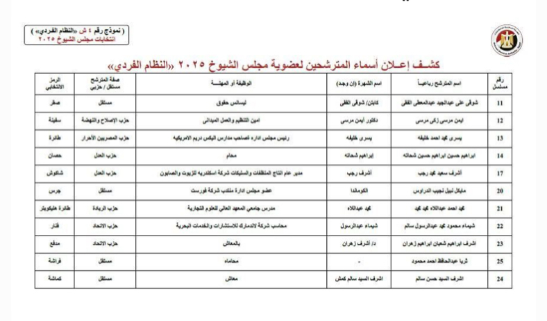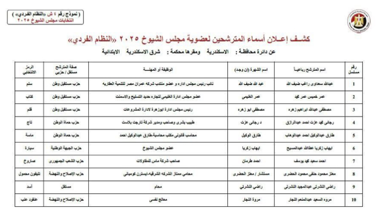 الإسكندرية للانتخابات مجلس الشيوخ 2025 بالنظام الفردي