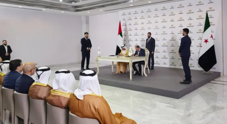 وحضر الرئيس السوري أحمد الشرع حفل توقيع الاتفاقية مع الشركة العالمية.