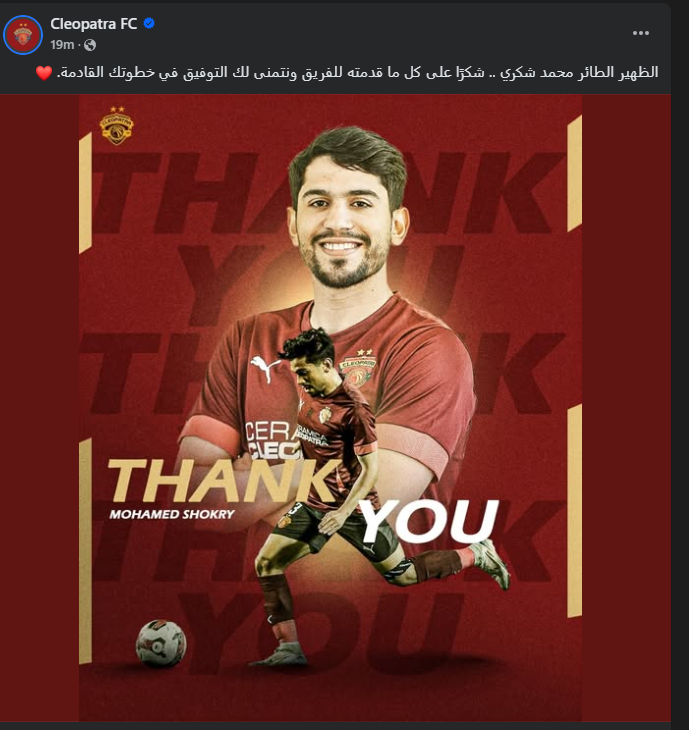 تحيا مصر، وكتبت الصفحة الرسمية لنادي سيراميكا عبر فيس بوك: الظهير الطائر محمد شكري .. شكرًا على كل ما قدمته للفريق ونتمنى لك التوفيق في خطوتك القادمة".